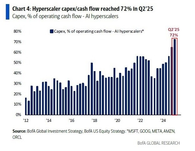 Data centers – AI’s beating heart – are eclipsing office construction spending in the U.S. In the PJM power region, which covers much of the Eastern U.S., 70% of last year’s electricity cost increases were driven by data center demand. This is real economic activity – not castles in the sky.